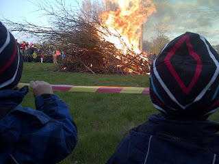 After dinner it was time for Kevin to join his scout friend who was responsible for lighting the bonfire at the local Walpurgis Night ceremony. A very proud Kevin (with one tooth less in his mouth!!) was the first one to start the fire!!!